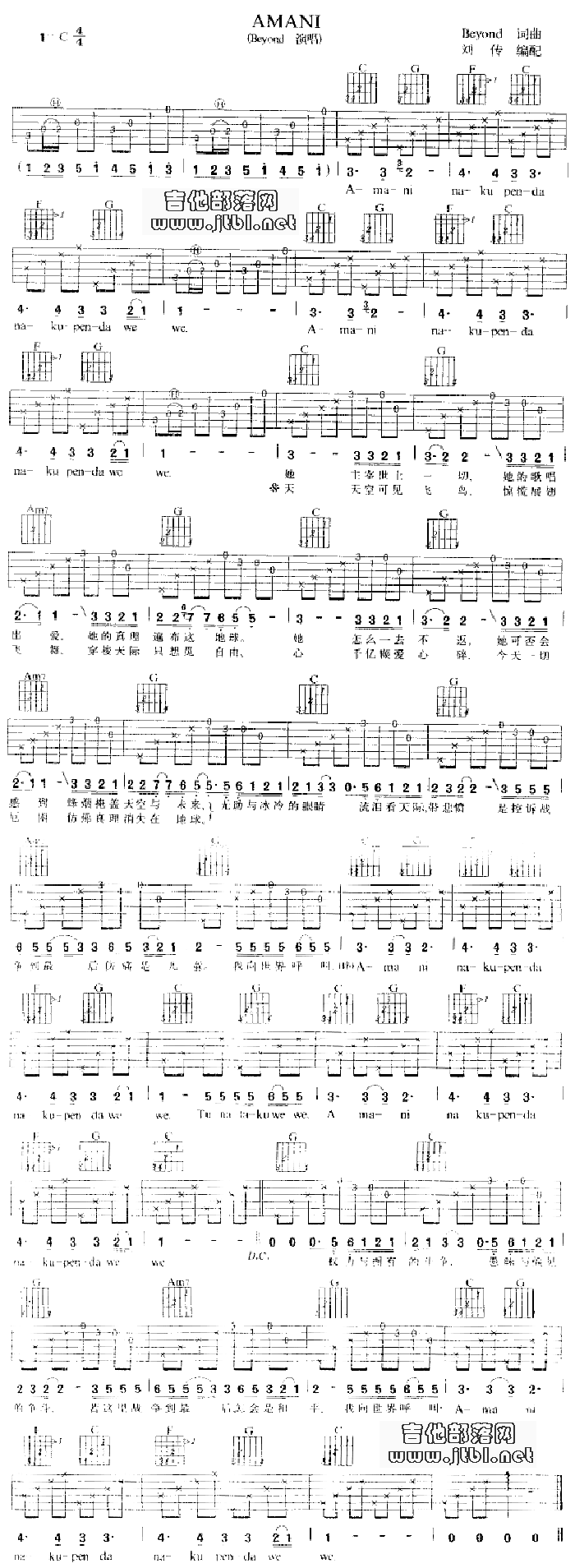 吉他谱:Amani-beyond乐队